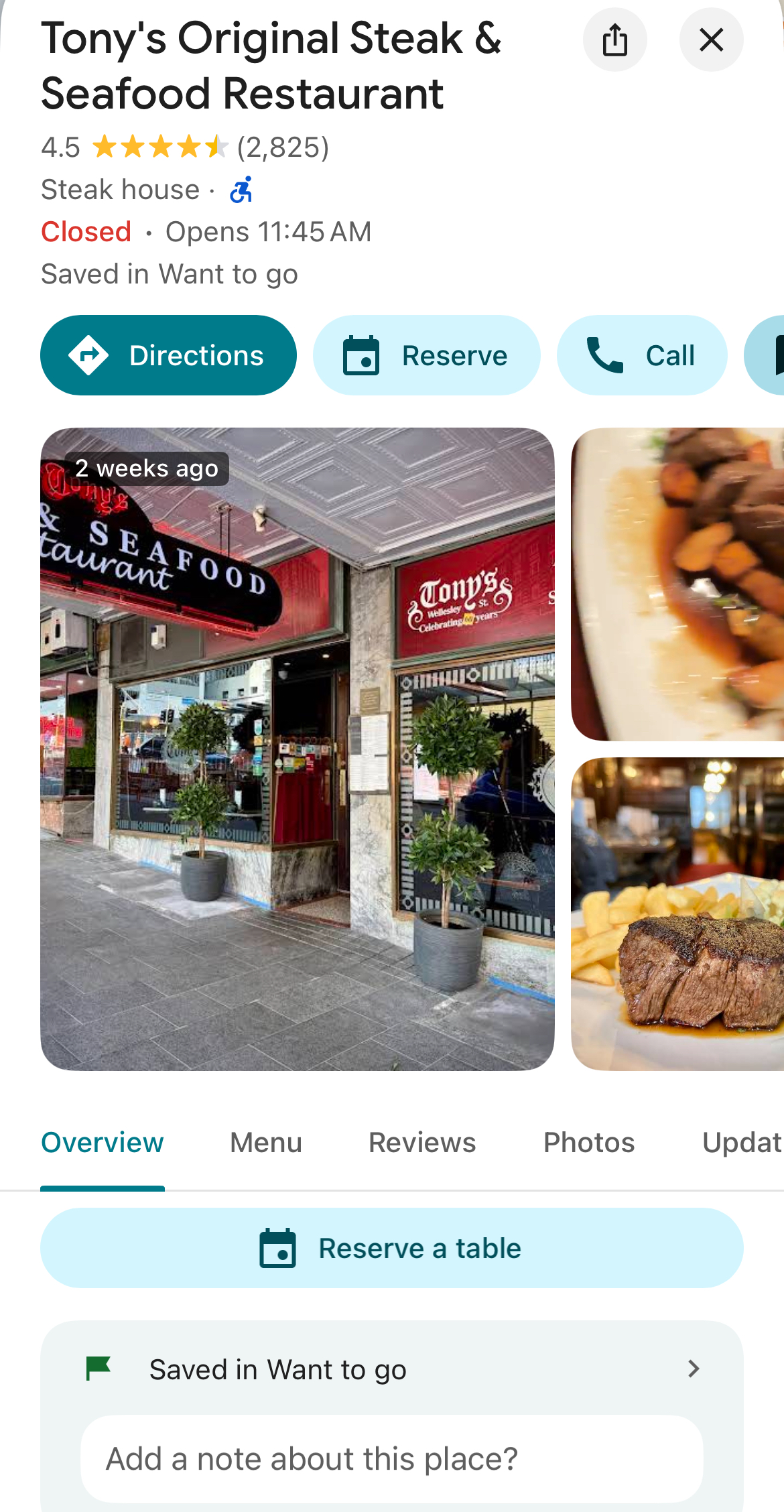 2. Tony’s Original Steak & Seafood Restaurant ⭐️⭐️⭐️